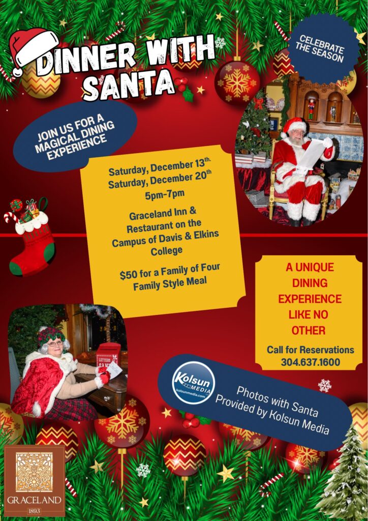 Make it a magical evening for the whole family at Dinner with Santa at the historic Graceland Inn & Restaurant this Saturday, December 13th from 5–7 PM. Enjoy a cozy, family-style meal, visits from Santa and Mrs. Claus, and free photos with Santa provided by Kolsun Media. ![]()