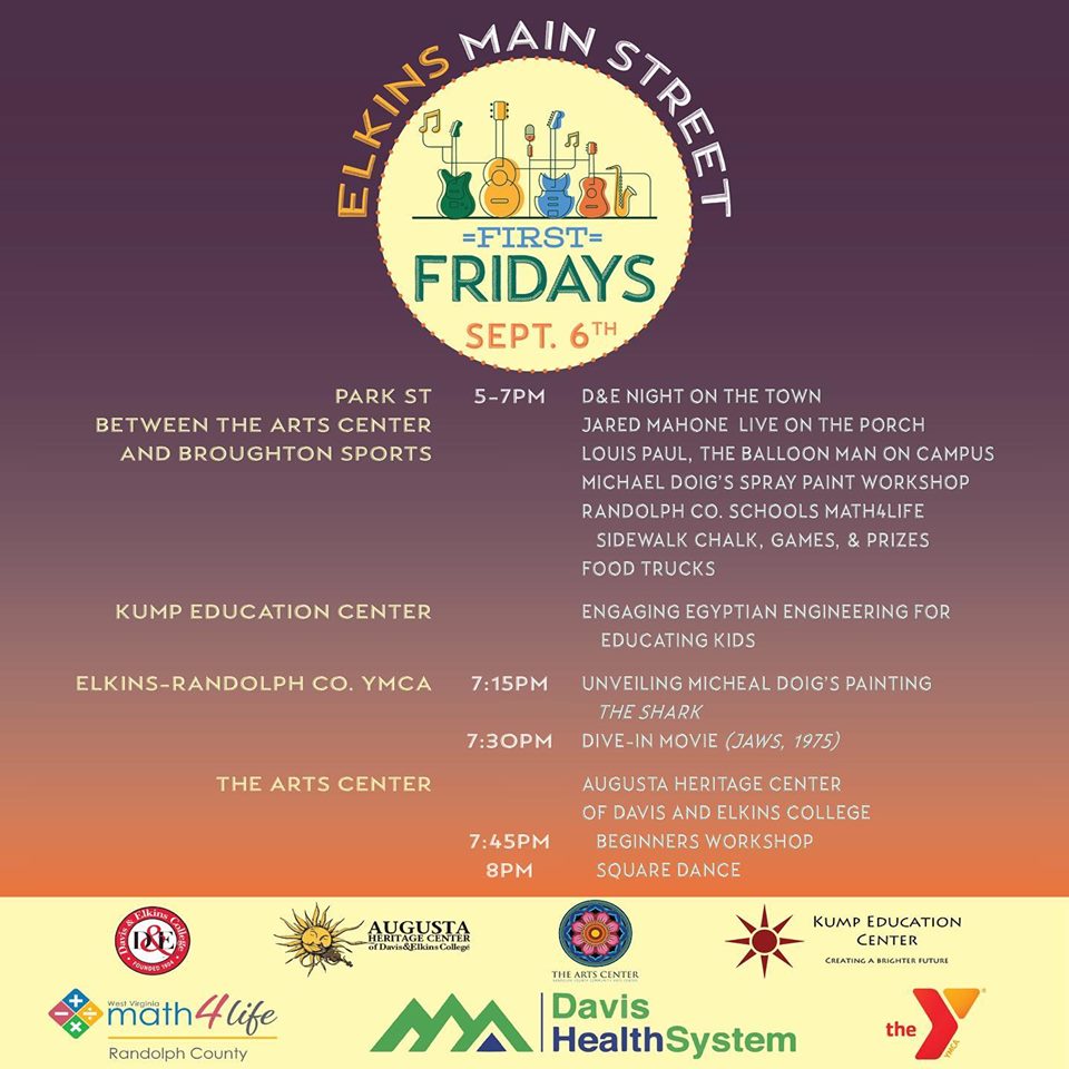 Posted by January 12, 2026 « All Events This event has passed. Elkins Main Street: First Friday September 6, 2019 @ 5:00 pm - 7:00 pm « First Date with BOB @ Elkins Sewing Center Celebrate First Friday @ The Arts Center » Add to calendar Google Calendar iCalendar Outlook 365 Outlook Live Details Date: September 6, 2019 Time: 5:00 pm - 7:00 pm Organizer Elkins Main Street Phone 304-637-4803 Email elkinsmainstreet@gmail.com View Organizer Website