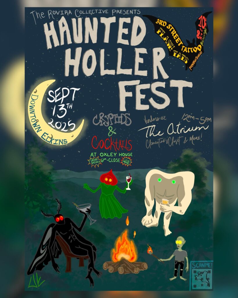 Get ready to experience all the spooky, cryptid, haunted, folklore goodness that WV has to offer with our vendor show, flash tattoos, yummy food, and more in the heart of downtown Elkins.