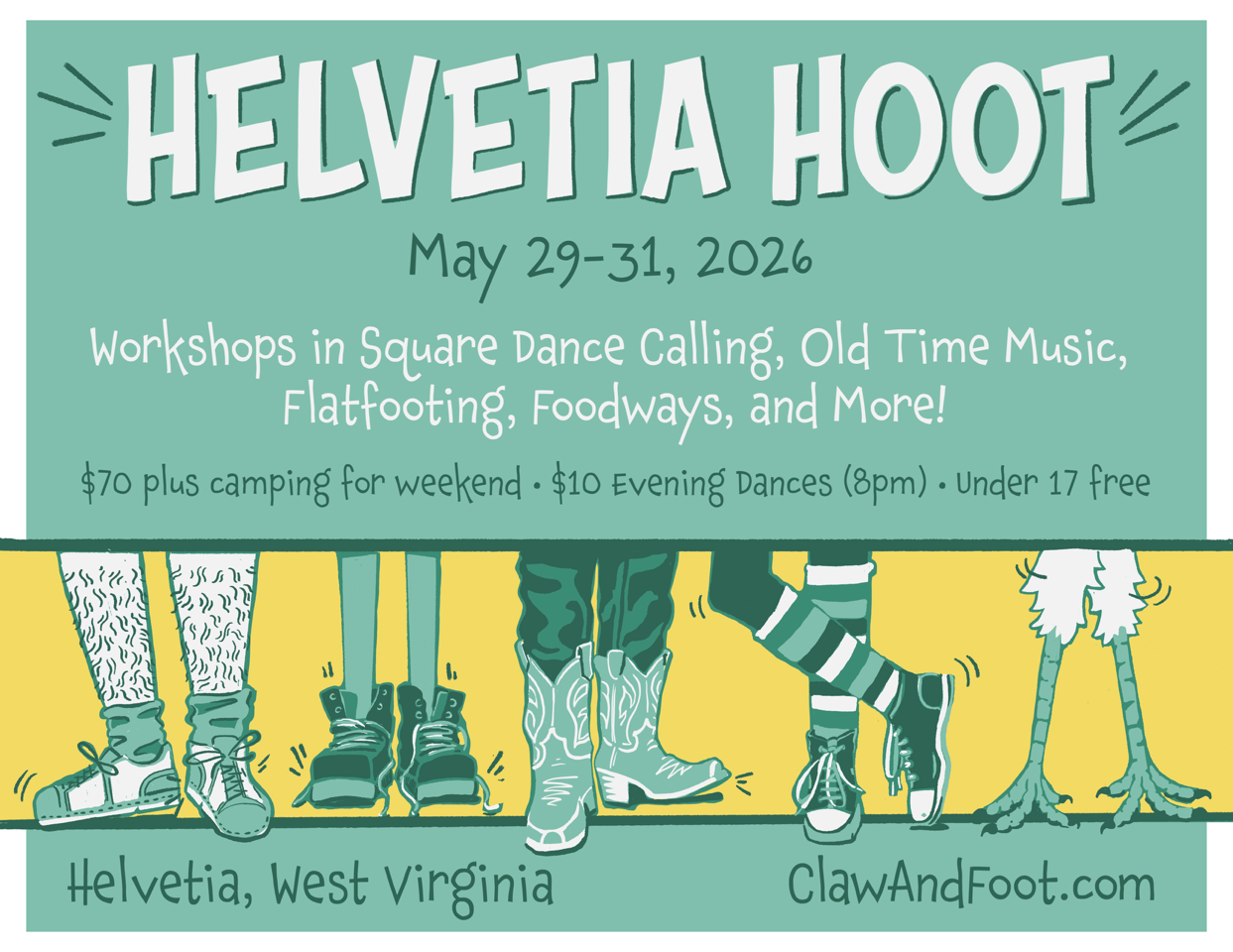 Helvetia Hoot is on for another round, May 29-31 2026. Campout party (weekend after memorial day and before Mt Airy). Catch the best elder WV square dance callers, jam all night and get puffed with fresh biscuits. Early bird tickets are available through March 1st.