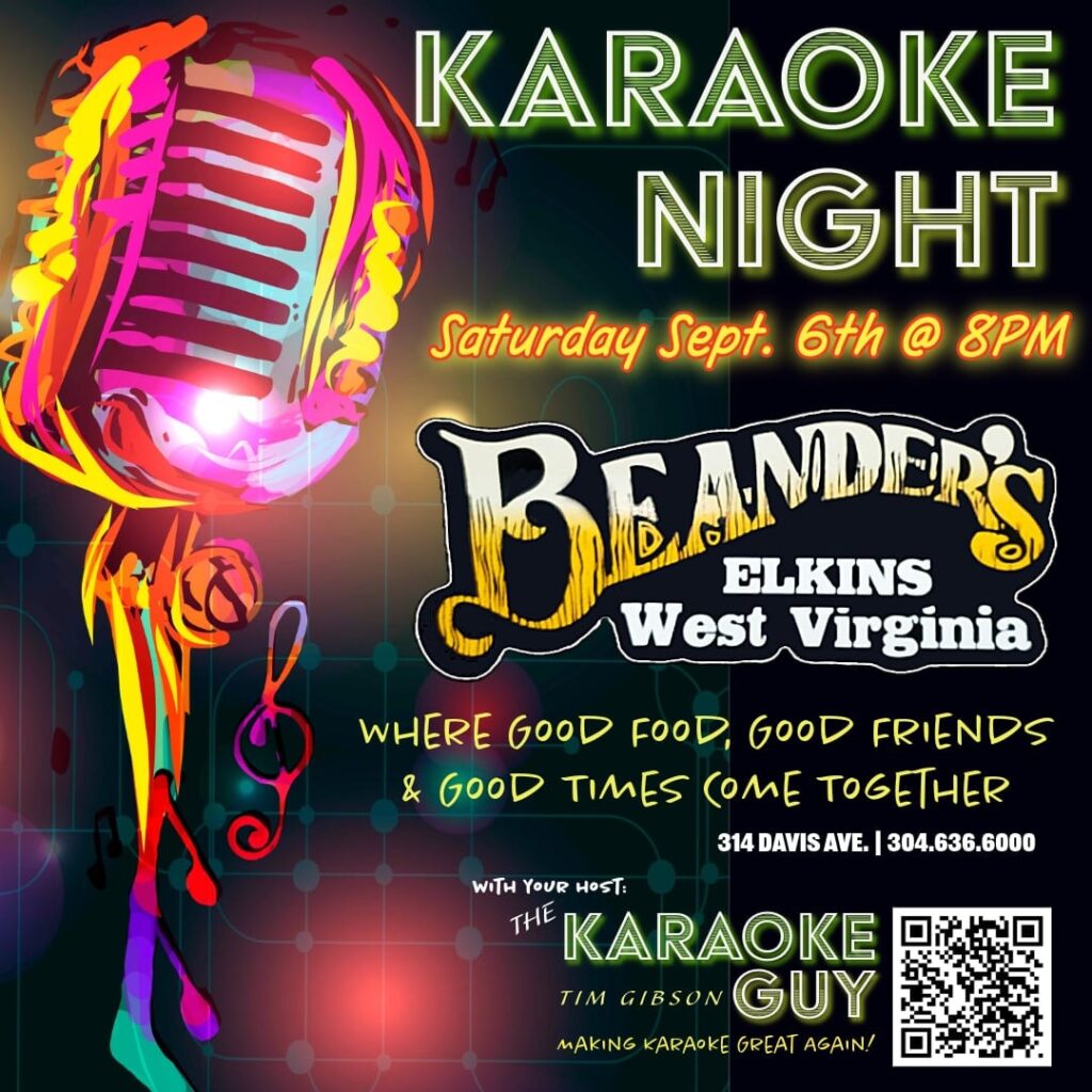 Posted by December 5, 2025 « All Events This event has passed. Karaoke Night @ Beander’s September 6 @ 8:00 pm - 10:00 pm « Live Music: Cassidy Dickens | Oxley House Free Youth Shoot | Izaak Walton League » Add to calendar Google Calendar iCalendar Outlook 365 Outlook Live Details Date: September 6 Time: 8:00 pm - 10:00 pm Event Categories: Food & Drink, Music Venue Beander’s, 314 Davis Ave, Elkins, WV 26241, USA 200 Boundary St United States + Google Map