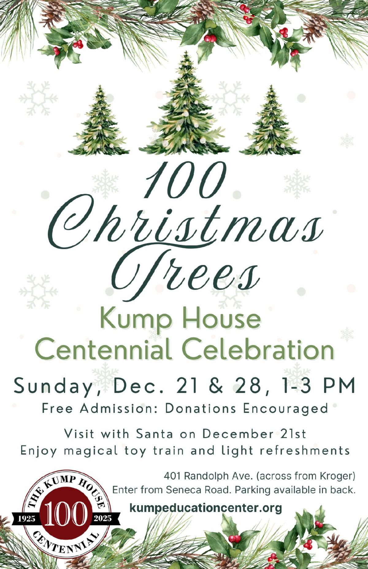 Posted by December 27, 2025 « All Events This event has passed. Kump House Centennial Celebrations December 21 @ 1:00 pm - 3:00 pm « Live Music: Pam Roberts & Joe Sabatino | Oxley House Gandy Dancer Mountain Memories Christmas » Add to calendar Google Calendar iCalendar Outlook 365 Outlook Live Details Date: December 21 Time: 1:00 pm - 3:00 pm Event Category: Community Venue Kump Education Center 401 Davis Avenue Elkins, WV 26241 United States + Google Map View Venue Website Related Events Kump House Centennial Celebrations December 28 @ 1:00 pm - 3:00 pm Gandy Dancer Rockin’ New Year’s Eve December 31 @ 7:00 pm 63rd Annual Ox Roast – Camp Pioneer July 23, 2026 @ 4:00 pm - 7:00 pm