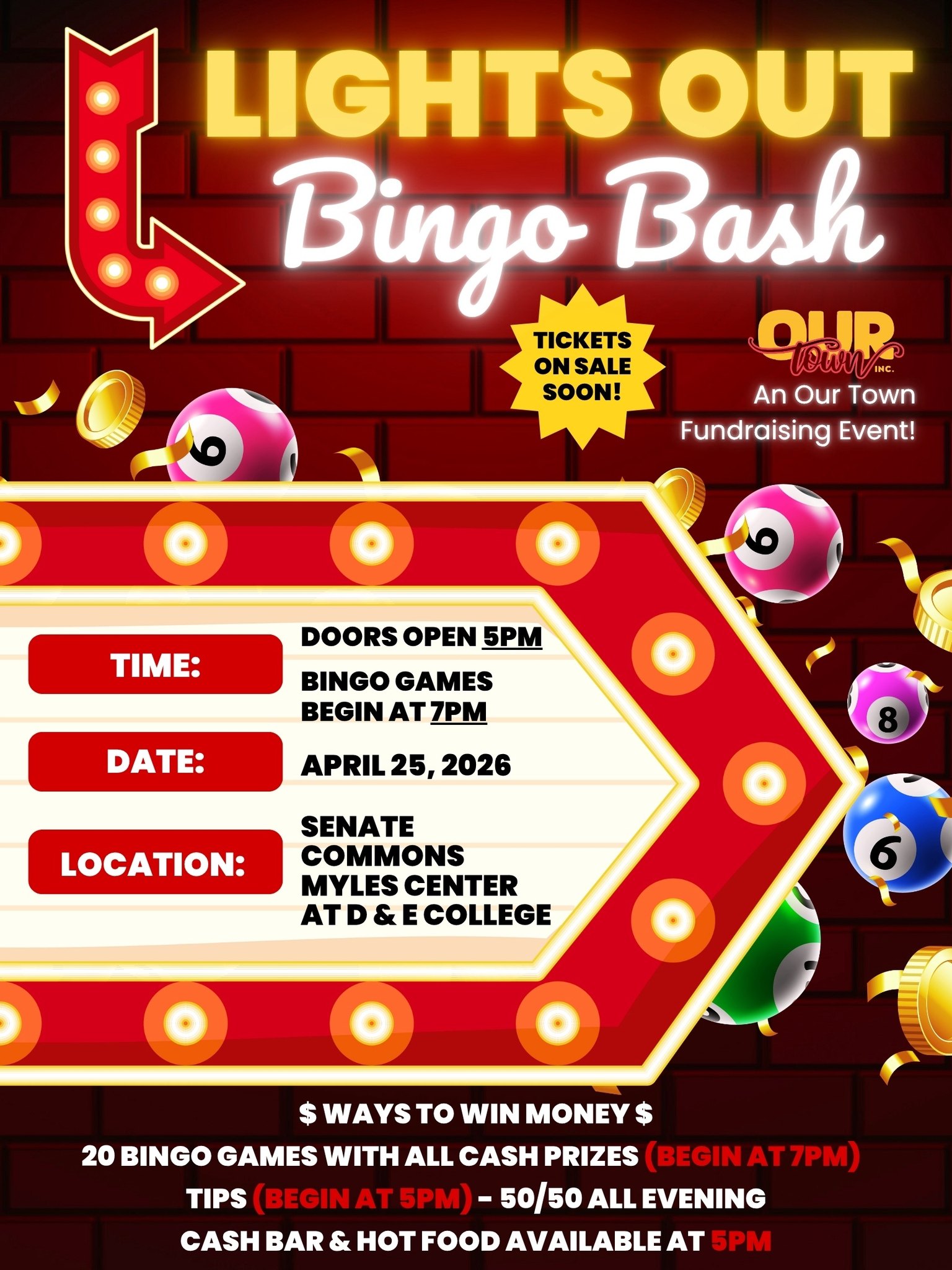 We are having our very first BINGO FUNDRAISING EVENT. Finish out Ramp Festival Saturday (April 25th) by bringing your friends to the campus of Davis & Elkins College for BINGO AND TIPS. It’s going to be a blast! Tickets available at https://www.zeffy.com/en-US/ticketing/our-town-bingo-bash