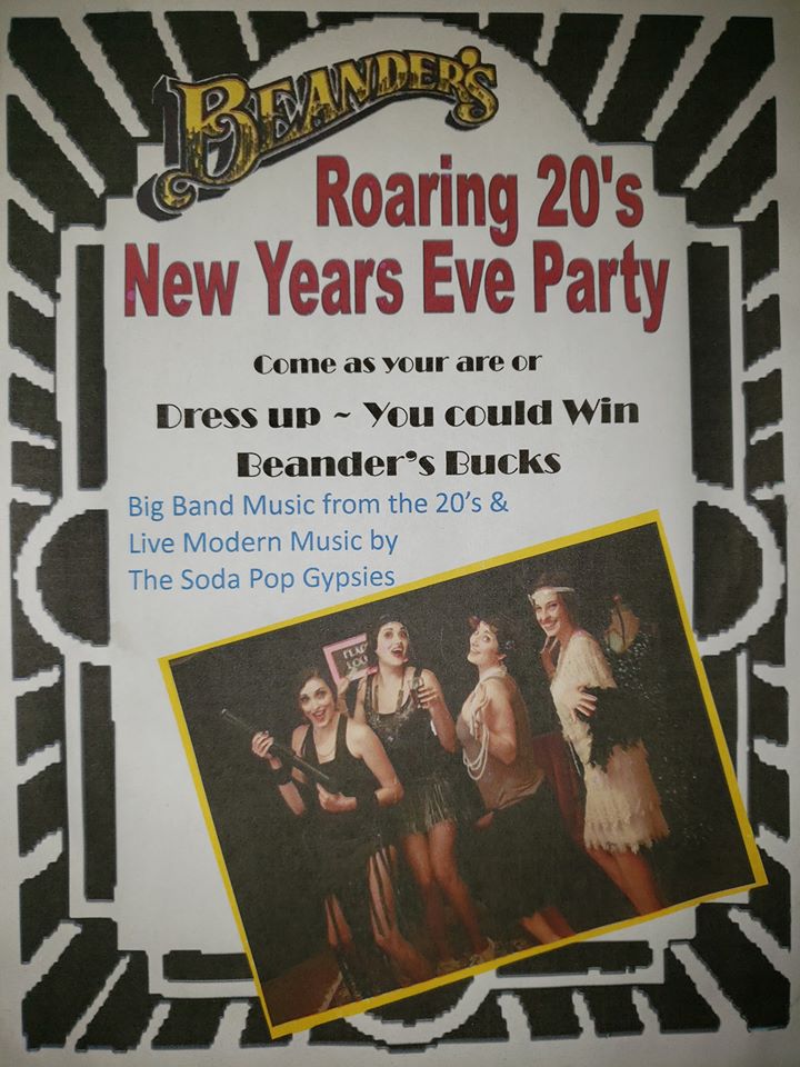 Posted by January 14, 2026 « All Events This event has passed. Roaring 20’s New Years Eve Party @ Beanders December 31, 2019 @ 7:00 pm - January 1, 2020 @ 2:00 am « Gandy Dancer: Rock N Roll New Year’s Eve Celebration New Year’s Eve Party @ Shavers Saloon » Add to calendar Google Calendar iCalendar Outlook 365 Outlook Live Details Start: December 31, 2019 @ 7:00 pm End: January 1, 2020 @ 2:00 am Event Category: Entertainment Event Tags:Drink Specials, Entertainment, Holiday, Live Music Website: https://www.facebook.com/BeandersBar/ Venue Beanders, 314 Davis Ave, Elkins, WV 26241, USA, 200 Boundary St, United States 1801 Boundary Dr United States + Google Map Related Events Brunch & Bubbles | Graceland Inn & Restaurant January 18 @ 11:00 am - 2:30 pm Foxy Karaoke at Fox Hops Brewery January 19 @ 7:00 pm - 9:30 pm|Recurring Event (See all)An event every week that begins at 7:00 pm on Monday, repeating until January 19, 2026 Game Night @ Beverly Heritage Center January 22 @ 5:30 pm - 8:00 pm