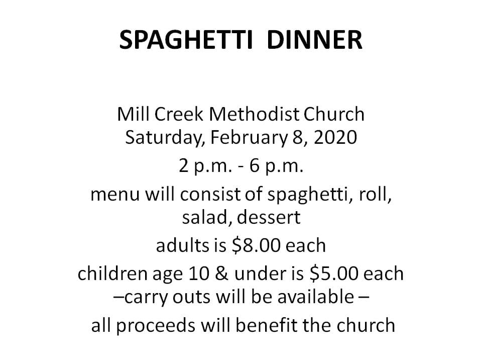 Posted by January 12, 2026 « All Events This event has passed. Spaghetti Dinner @ Mill Creek Methodist Church February 8, 2020 @ 2:00 pm - 6:00 pm « Mask Making Party @ Generation Randolph Fly Tying 101 Class, Part 1 (pre-register) @ Delmonte Market » Add to calendar Google Calendar iCalendar Outlook 365 Outlook Live Details Date: February 8, 2020 Time: 2:00 pm - 6:00 pm Event Tags:Benefit Event, Community, Food Specials Venue Mill Creek United Methodist Church Mill Creek, WV 262480 United States + Google Map