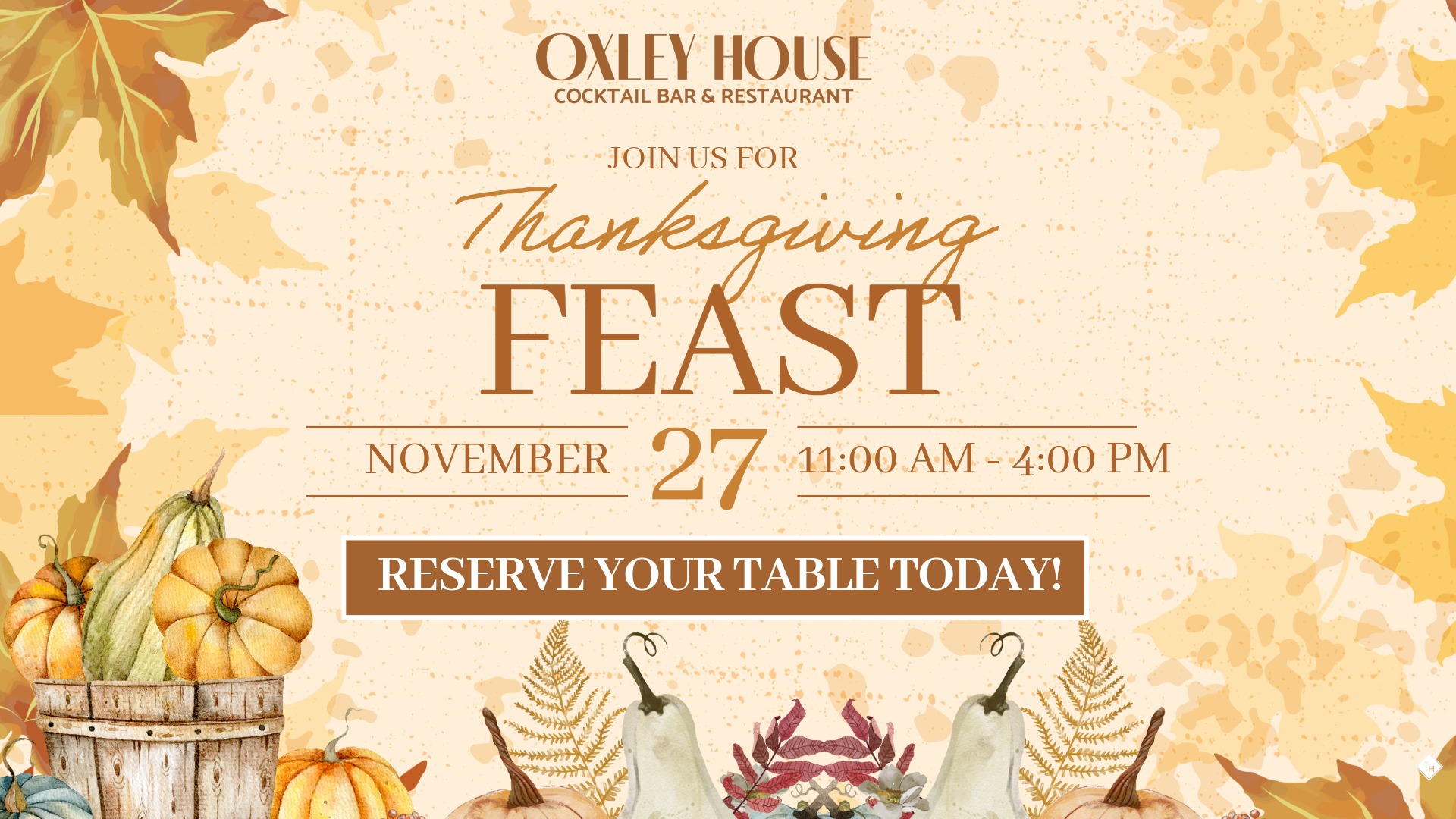Join us at the Oxley House Restaurant & Cocktail Bar inside the Tygart Hotel for a feast worth being thankful for.