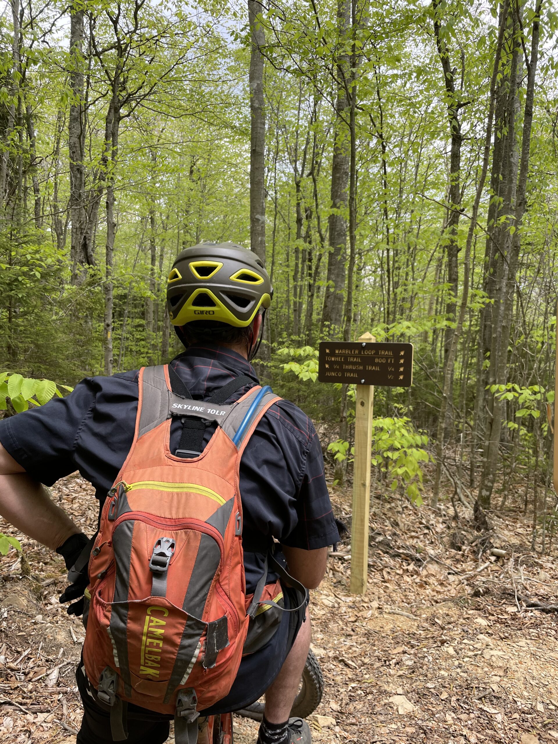 The Warbler Loop Trail is a 1.5 mile loop that takes you on an old logging road overgrown with grass. During the spring and fall, beautiful wildflowers bloom along the trail. This ride is smooth and flowy. You’ll reach an intersection where you can join the Junco Trail or continue the loop. As you continue downhill the trail will switch from grassy to single-track dirt. This trail is one of the easier biking and hiking trails. There is also a “jump” portion off this trail called the Thrush Trail, climbing up it can be very challenging. The decline has some sharp “S” turns that even the fastest riders have to use their breaks. At the end of the decline, you’ll come to another intersection where you can extend the loop by a quarter of a mile and ride the Towhee Trail. Again, you have more options: to either climb back up the Warbler Loop Trail to complete it or try your hand at the Sparrow Loop Trail describe above.
