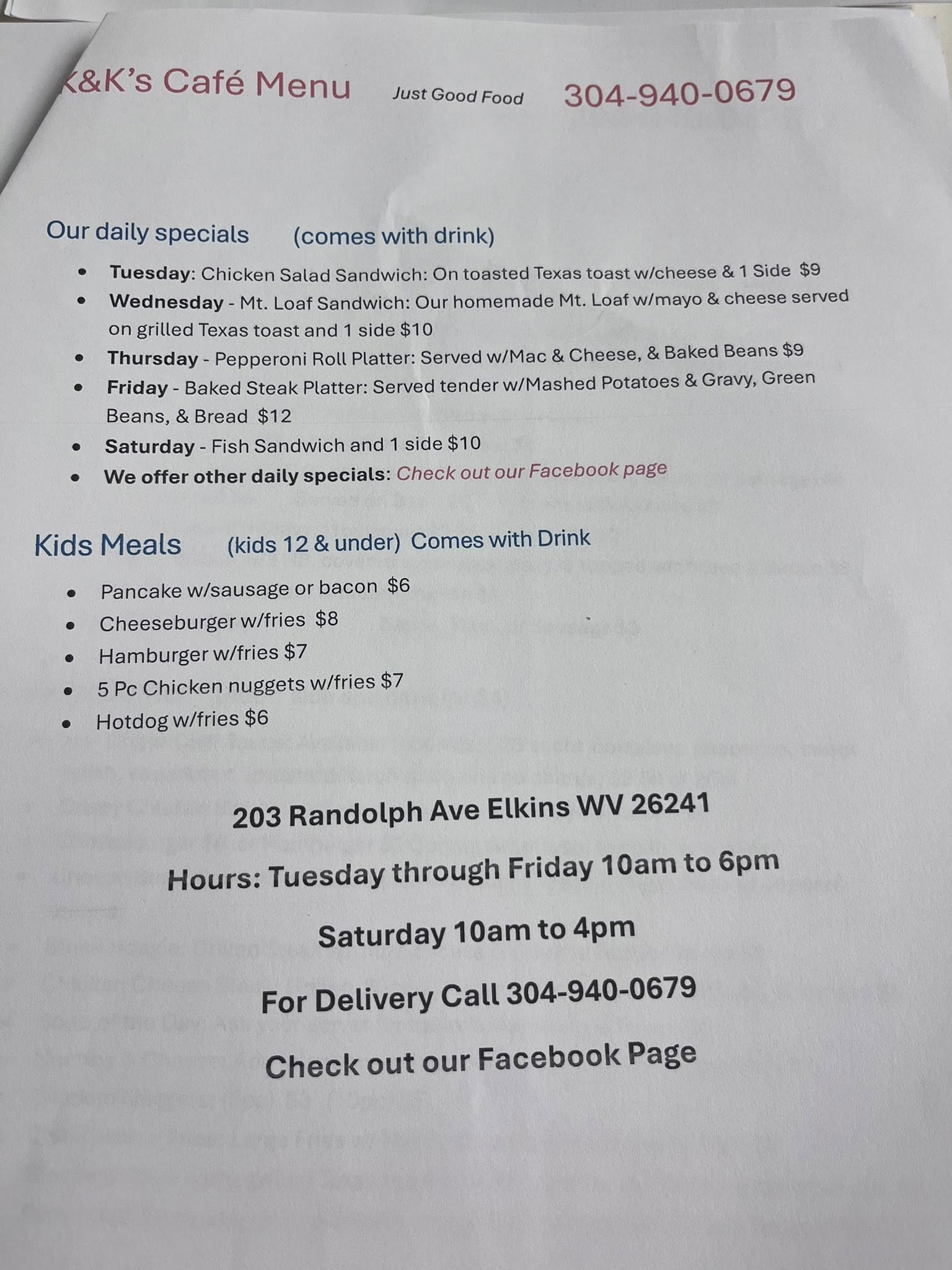 Welcome to K&K’s Cafe! Whether you’re here for a fresh cup of coffee or a delicious meal, we’ve got you covered. Dine in, or order for pickup and delivery – bringing the comfort to you, wherever you are!