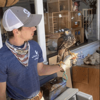 Collin Waybright, Master Class Falconer, has been honing his skills with birds of prey since the age of 14. His impressive expertise often leaves others in awe, as they frequently remark, “He makes training birds look easy!”