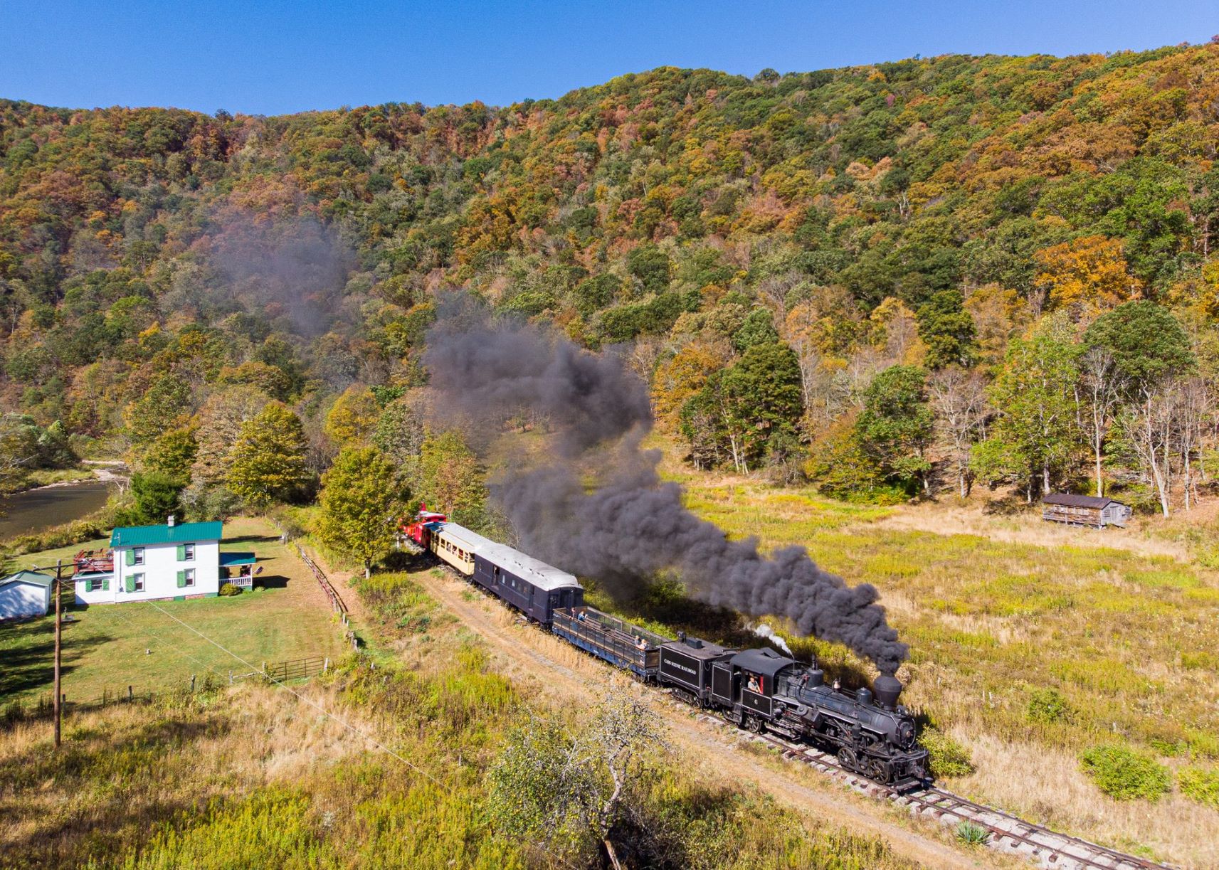 In century-old Durbin, the Durbin Rocket excursion train is powered by a coal-fired steam engine. Departing the historic Durbin Depot, you can ride in the authentic 1920-era coaches and vintage wooden cabooses. The ride covers 10.5 miles in 2 hours so it’s the perfect duration for the whole family. Feel the fresh open air as you chug along through the Monongahela National Forest and enjoy the scheme of fall colors dotting the mountains. The color is truly spectacular as it mirrors the Greenbrier River. Catch the final season of the Durbin Rocket before the Cass to Durbin line opens in 2022.