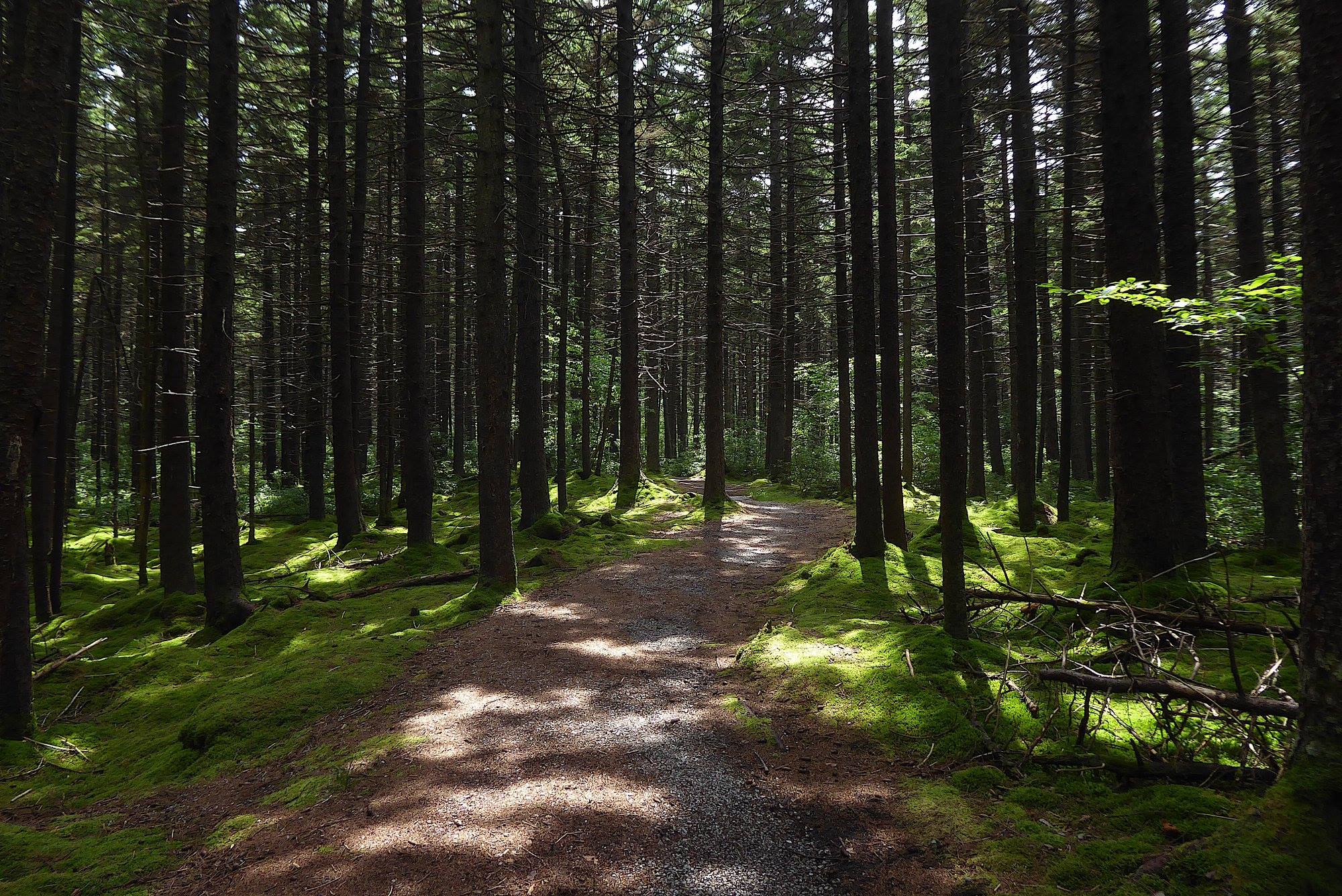 At 4,445 feet above sea level, Gaudineer Knob, the highest elevation of Shavers Mountain, a ridge of the Alleghenies, is comprised of nearly pure stands of Red Spruce offering habitat to many boreal forest birds. Within the 140 acre region, visitors can find two hiking trails that both span around a half-mile long. The trails offer sights of not only the notable red spruce trees but also cherry, yellow birch, beech, red maple, and sugar maple trees. Other plants and foliage include rhododendron, moosewood, new-growth spruce and birch, ferns, wood sorrel, mosses, wood shamrock, trilliums, and foam flowers.