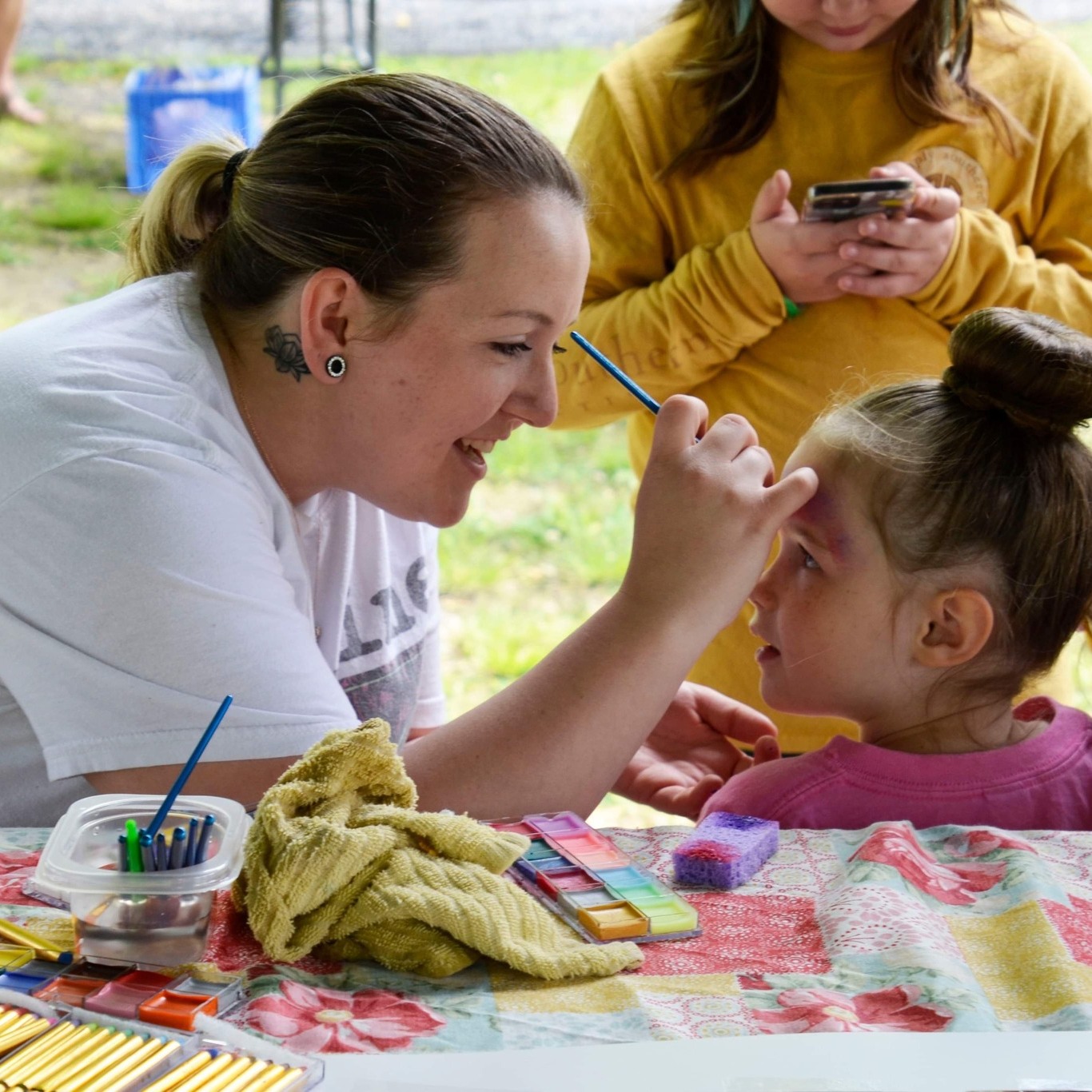 A family-friendly area filled with face painting, crafts, hula hoop lessons, and a Four Leaf Clover Hunt with a $100 prize for the winner.