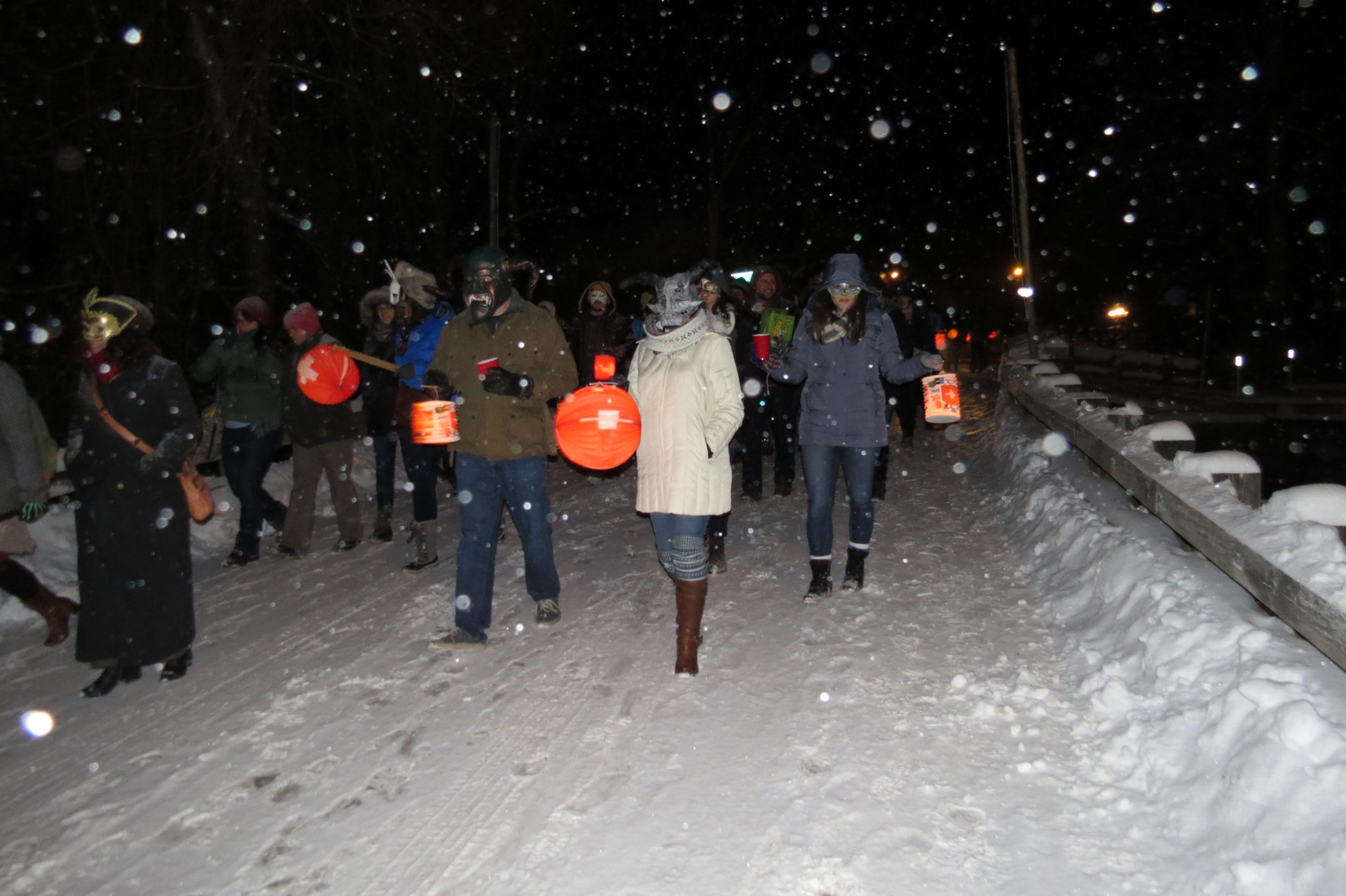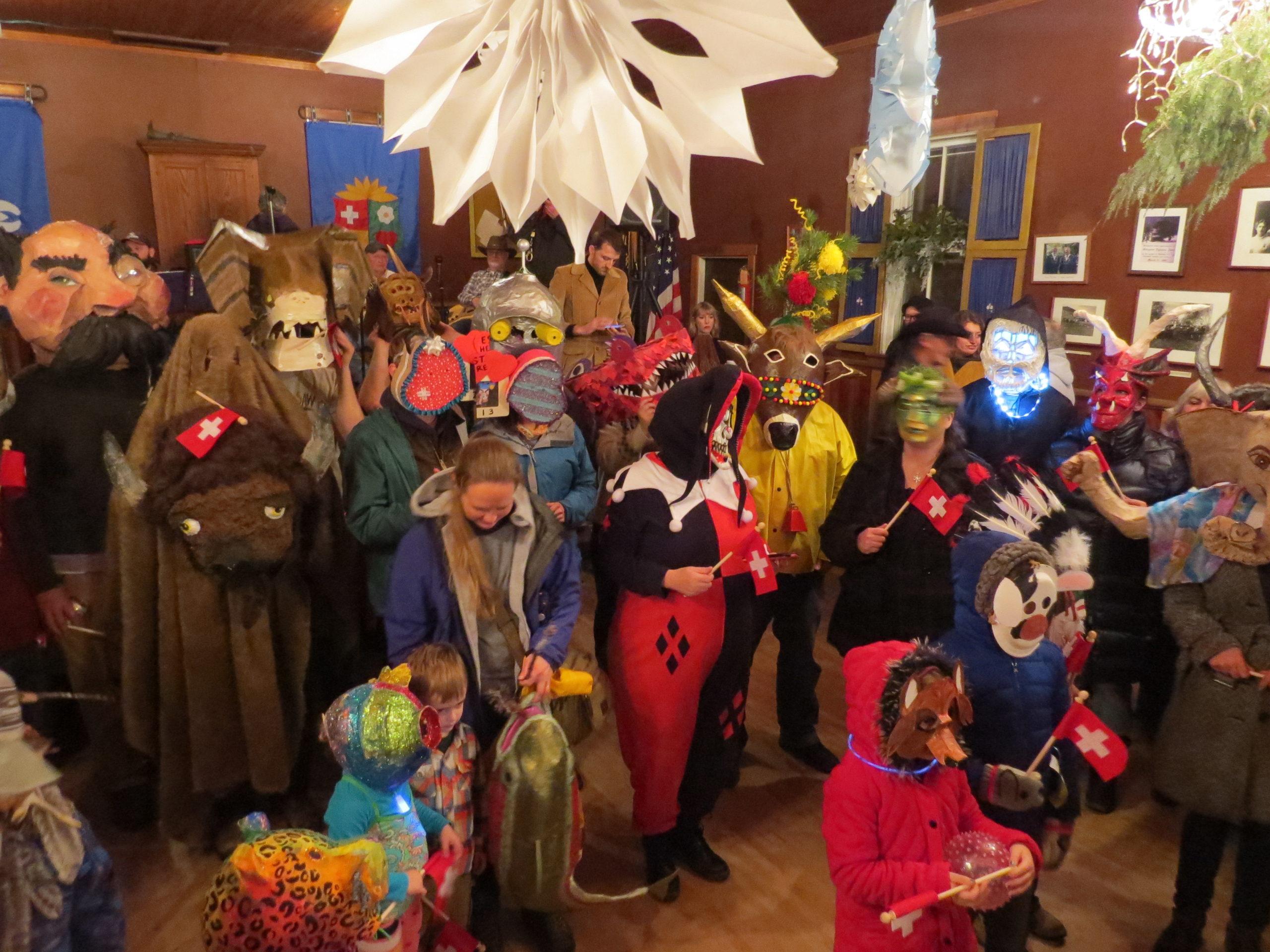 The festivities begin at the Star Band Hall with open-mic music, jam sessions, and food for sale. Around 8:00pm people don their masks for the Lampion Parade. Each person carries a candle-lit paper lamp in a procession from the Star Band Hall down the street to the Community Hall. There you will find the effigy of Old Man Winter strung from the ceiling. The best masks are judged and the Masquerade square dance begins ($10 admission, cash only). The homemade masks you can find at Fasnacht, come in all shapes and sizes and are often elaborate, frightening, or comical. You can see examples of these masks on display year-round at the Kultur Haus.