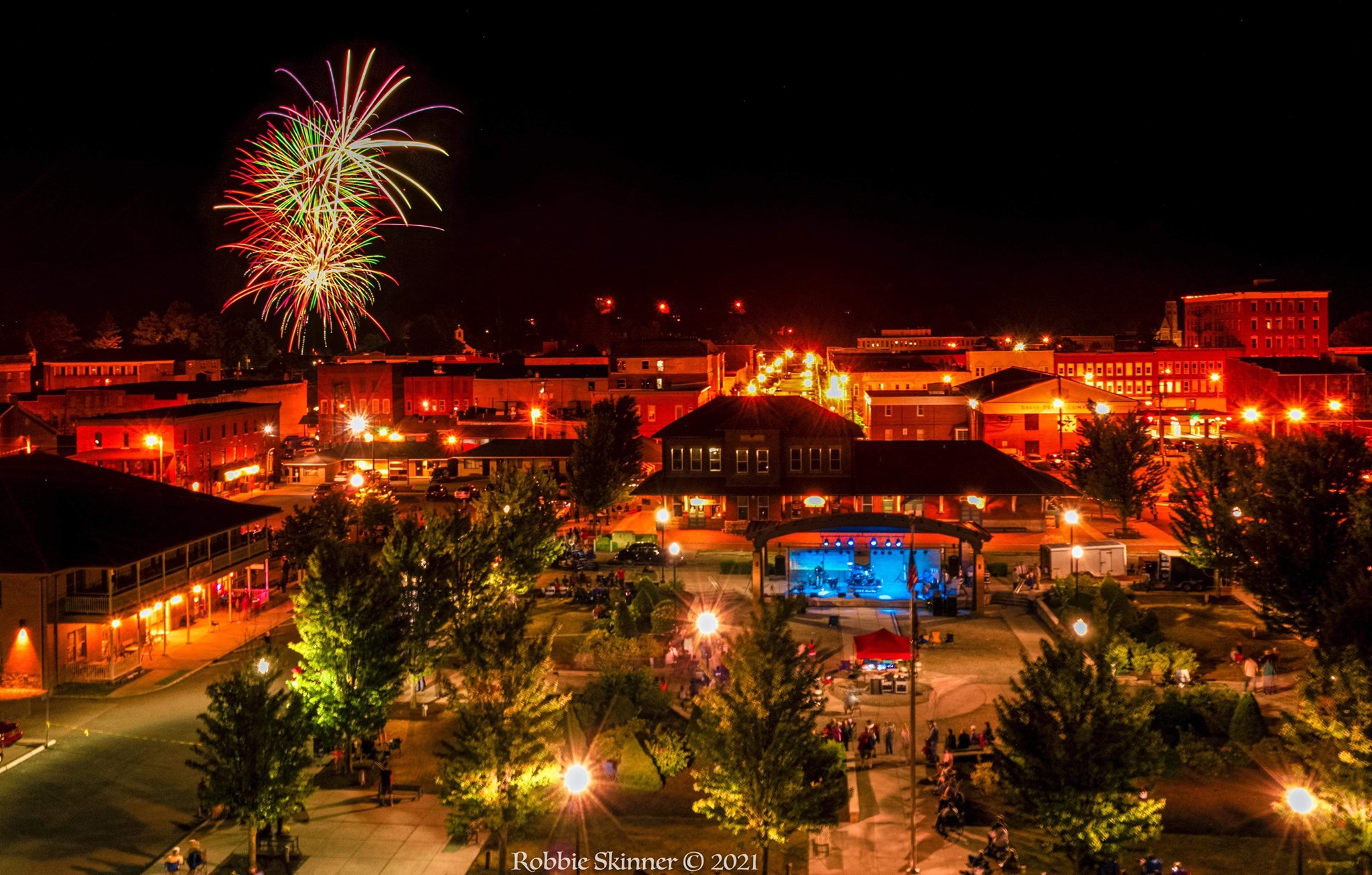 Stick around after the music โ fireworks will light up the skies over downtown Elkins, launching from the hillside opposite the Veterans Memorial on Harrison Avenue. Bring your chairs, blankets, and friends!