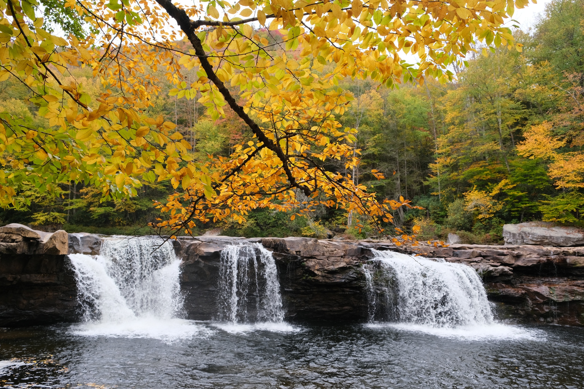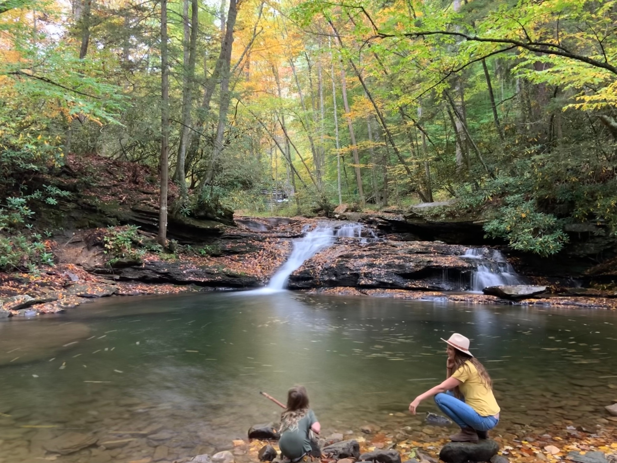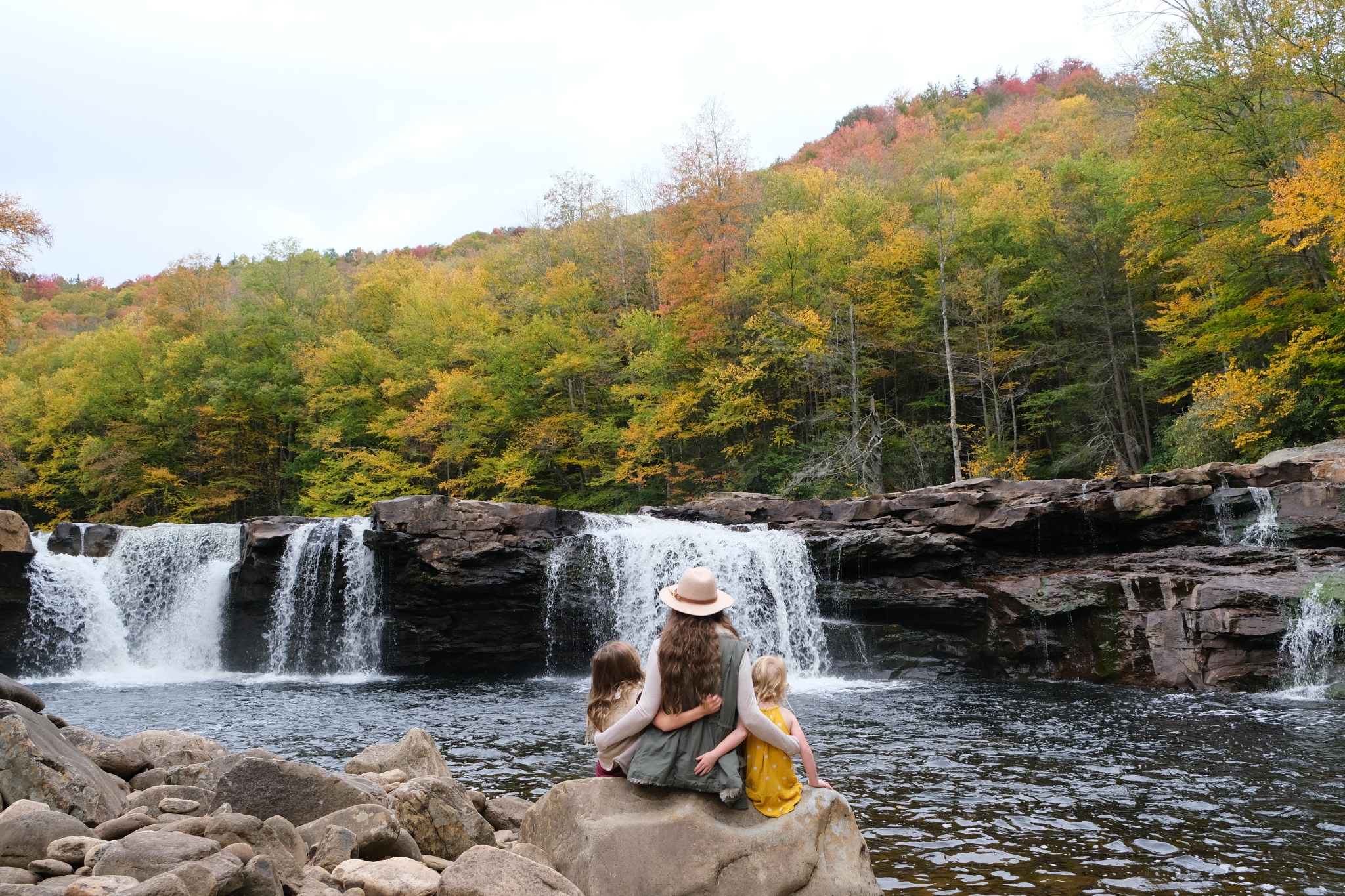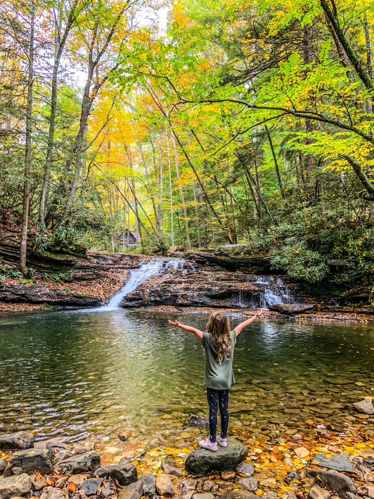 Kumbrabow State Forest – If you are on unpaved roads, have no fear – you are going in the right direction! Kumbrabow State Forest is a true gem. Typically when visiting mountainous trails during peak fall season, there are crowds that can sour the experience. I am here to tell you (maybe quietly so the secret doesn’t get out) that we felt like we had all 9,474 acres to ourselves. You will lose your cell service and find tranquility as you journey through the winding mountain roads. We stopped at Mill Creek Falls and enjoyed the beautiful waterfall, a very short walk from the parking lot.