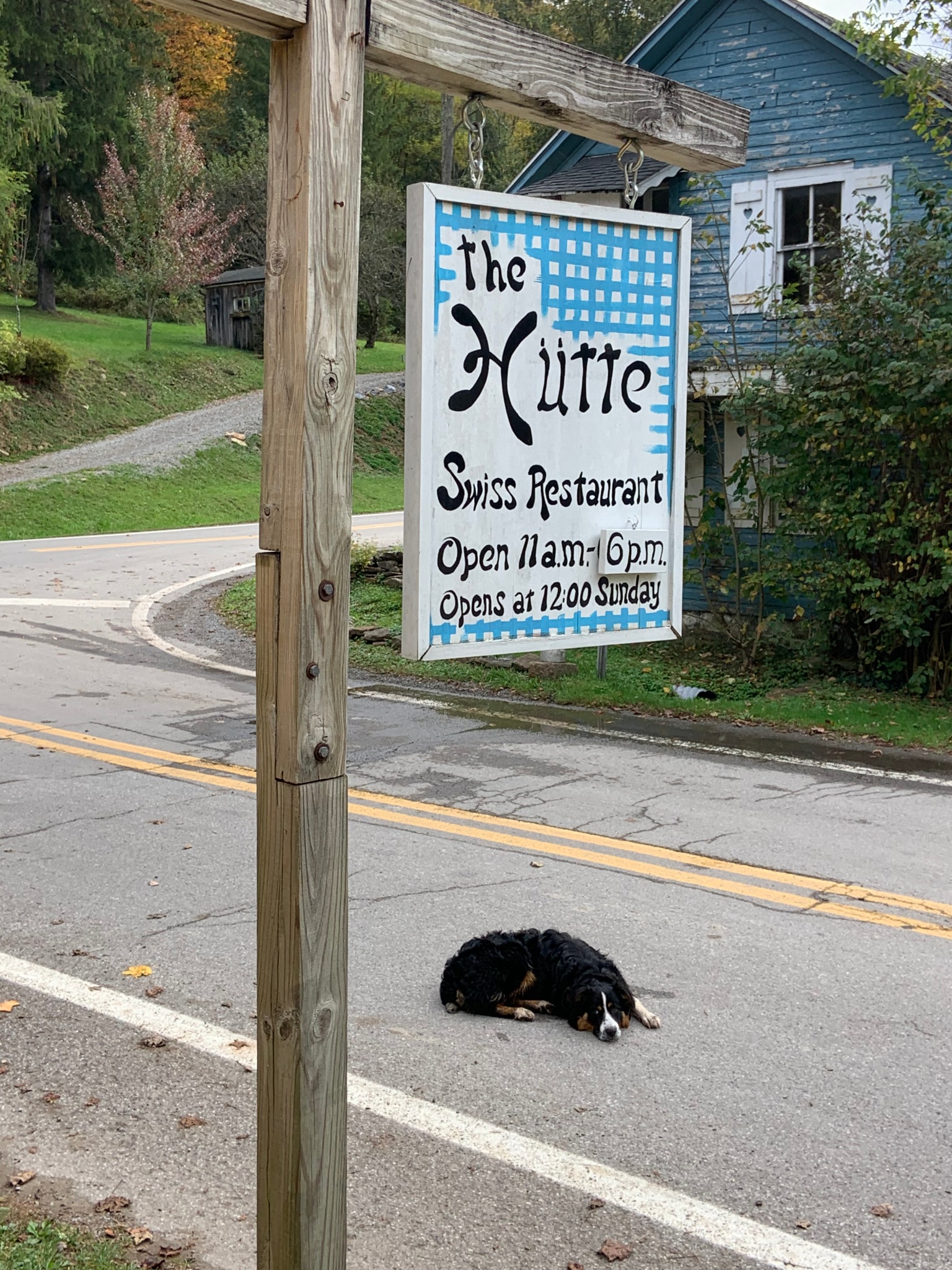 Hütte Restaurant – Hütte is located in a small Swiss-German village in the mountains of West Virginia, Helvetia. Helvetia was settled by a group of Swiss and German immigrants who came via Brooklyn, NY, in 1869. This is a very small town with a unique European flare. The food is delicious, please please please get the cheese plate (drool…). There was a local dog that was laying in the middle of the road when we arrived, only in a small town!