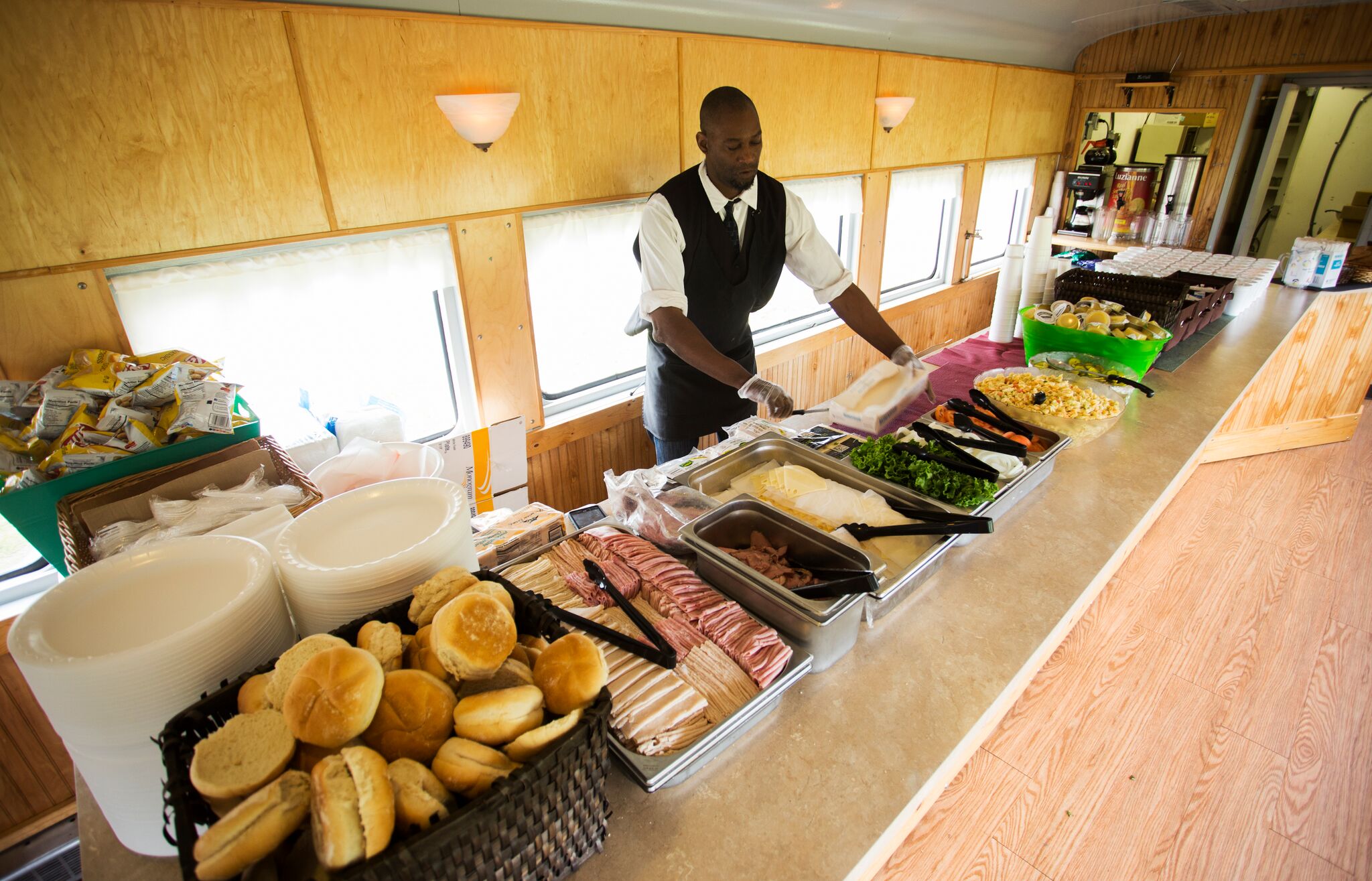 Take a break from planning and let the train do the work for you and your family to unwind. A delicious cold cut lunch which chips and a cookie is included in the ticket price, so you won’t go hungry on this long journey. Coffee, tea, and water are also provided. Treat yourself to the amenities of the parlor car for a more personal experience. And, just in case all of that goes through you quickly, there are restrooms located on the train.